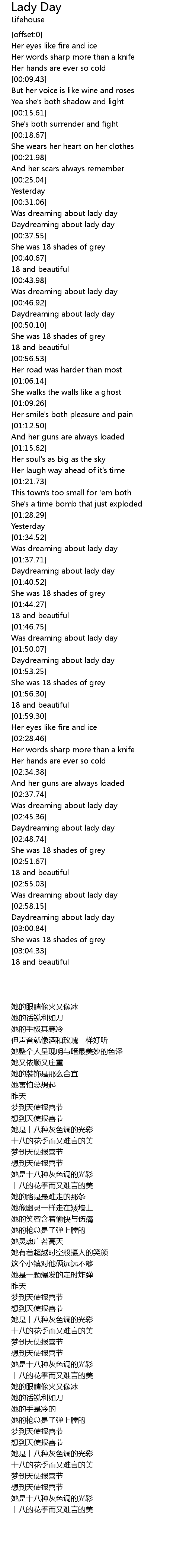 | [00:38.43] | She was 18 shades of grey |