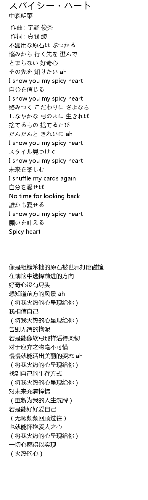 | [01:04.74] | I show you my spicy heart |