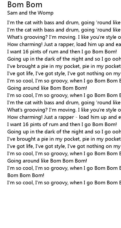 I'm the cat with bass and drum, going 'round like Bom Bom Bom! |