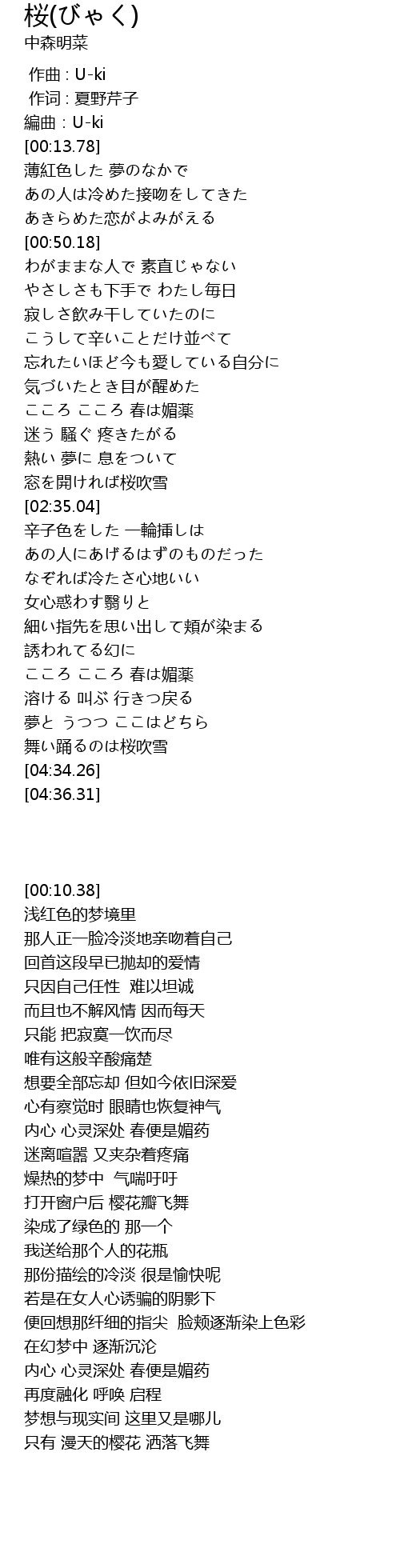 | [00:20.84] | 薄紅色した 夢のなかで |