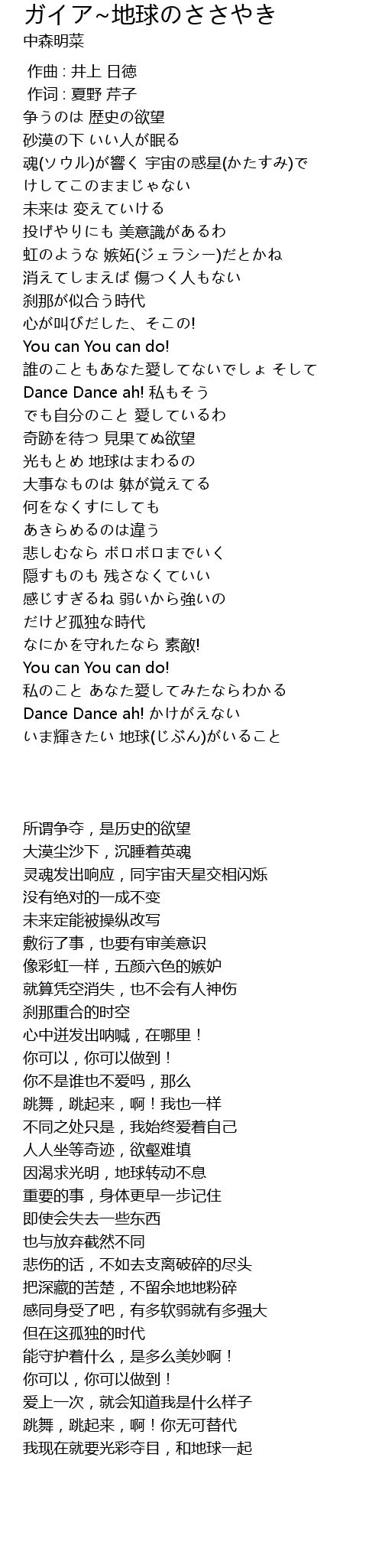 | [02:54.74] | いま輝きたい 地球(じぶん)がいること |