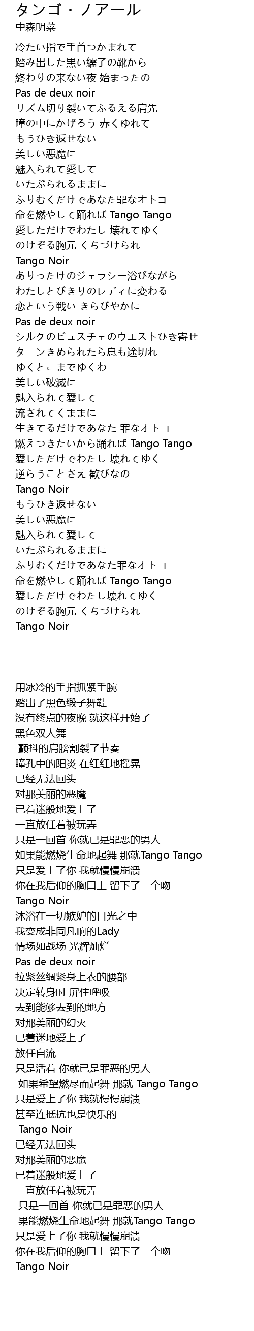 | Song | タンゴ・ノアール |