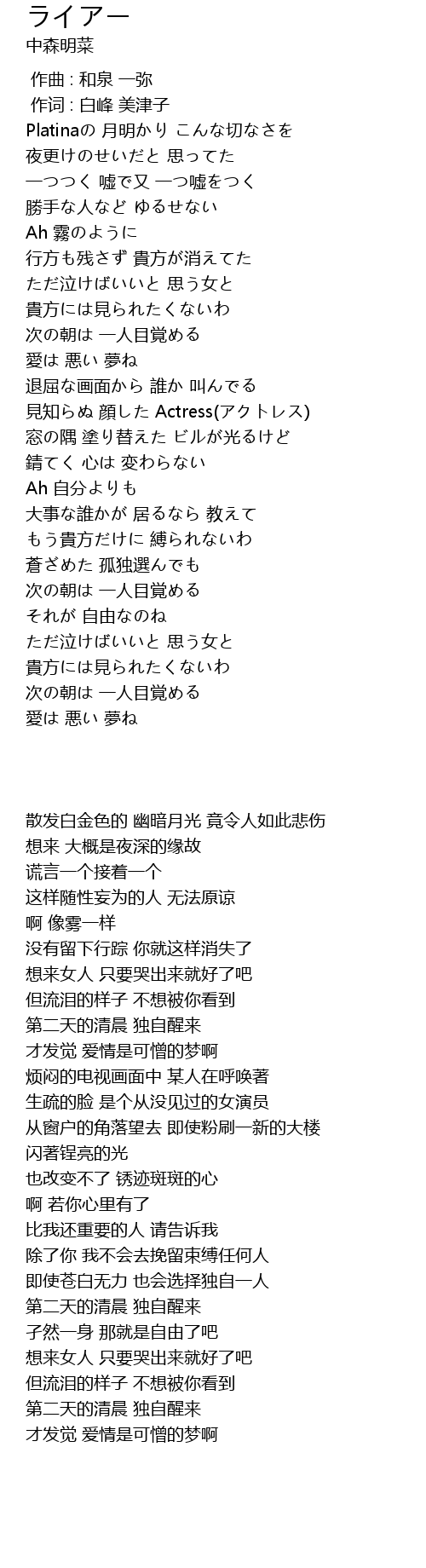 | [00:45.88] | Platinaの 月明かり こんな切なさを |