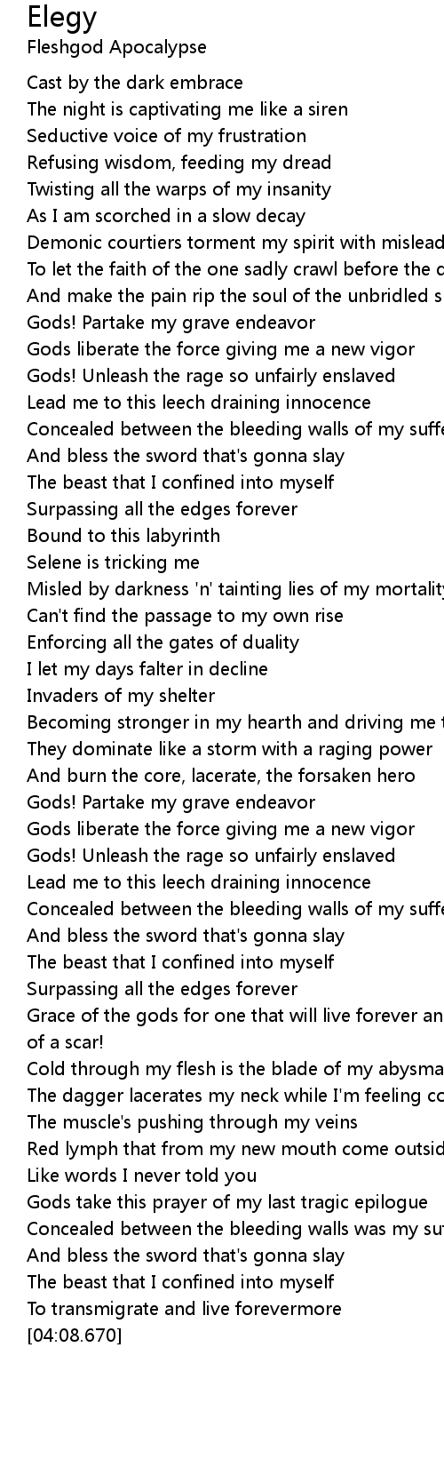 Gods take this prayer of my last tragic epilogue |