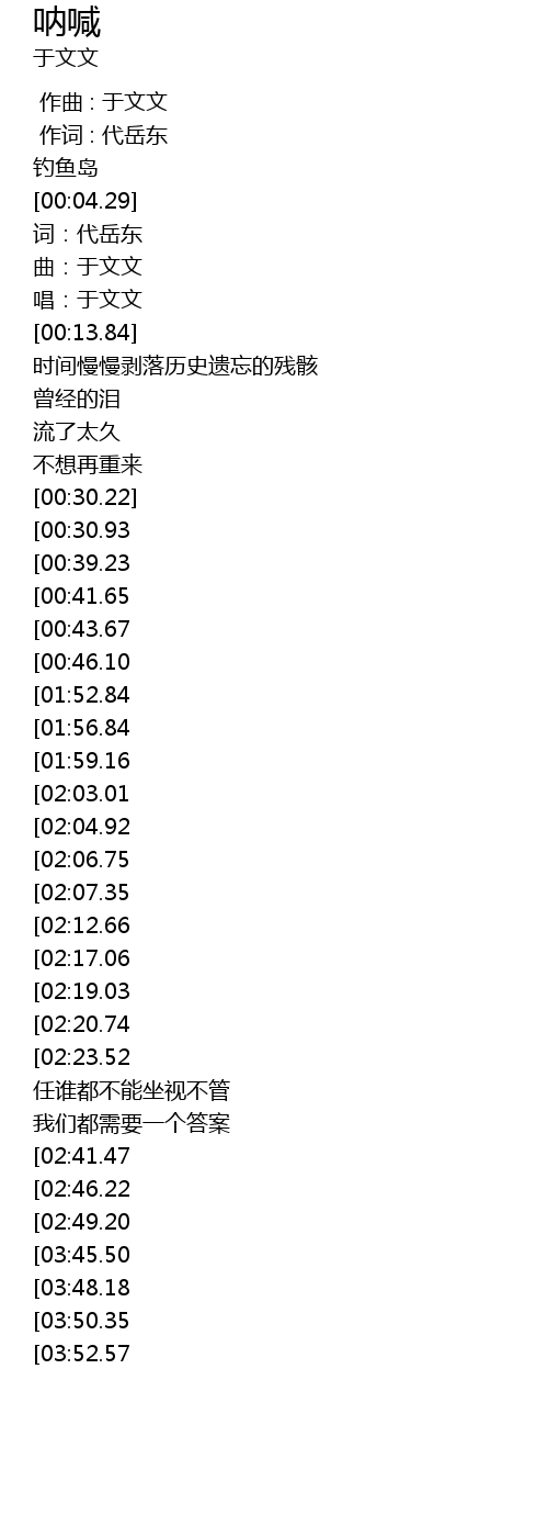 | [03:58.59][03:50.35][03:42.24][02:53.45] | 心中的呐喊 |