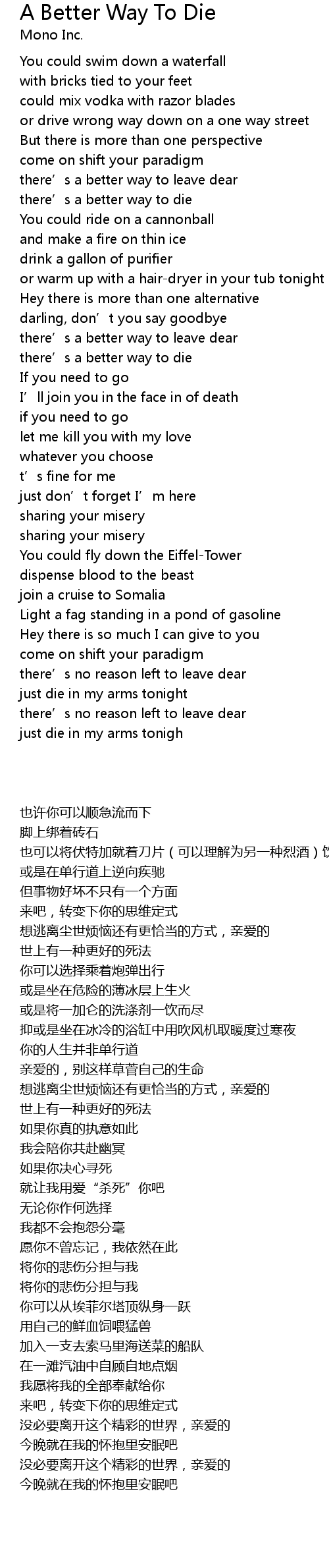 | [02:23.23] | Light a fag standing in a pond of gasoline |