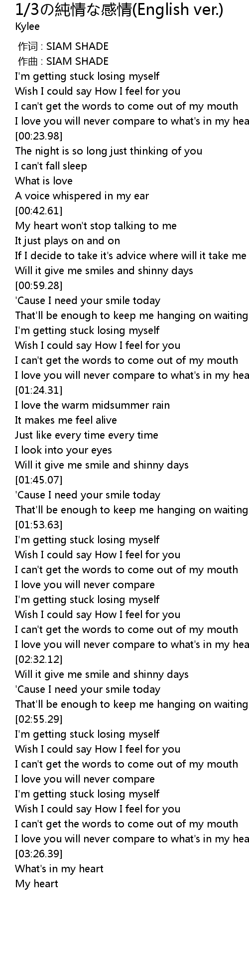 | [03:03.71] | I can' t get the words to come out of my mouth |