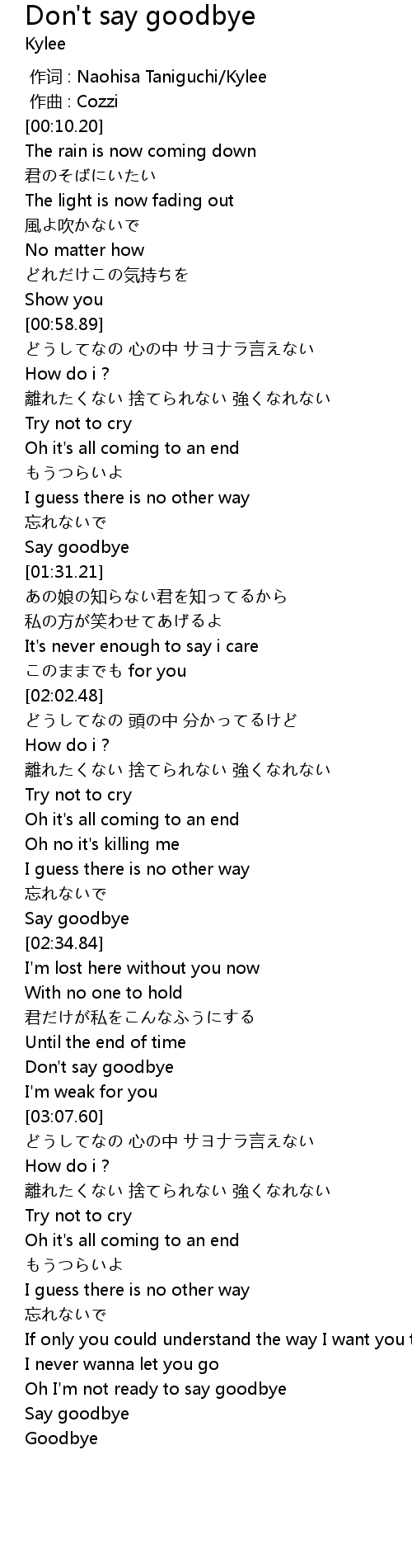 | [03:44.81] | Oh I' m not ready to say goodbye |