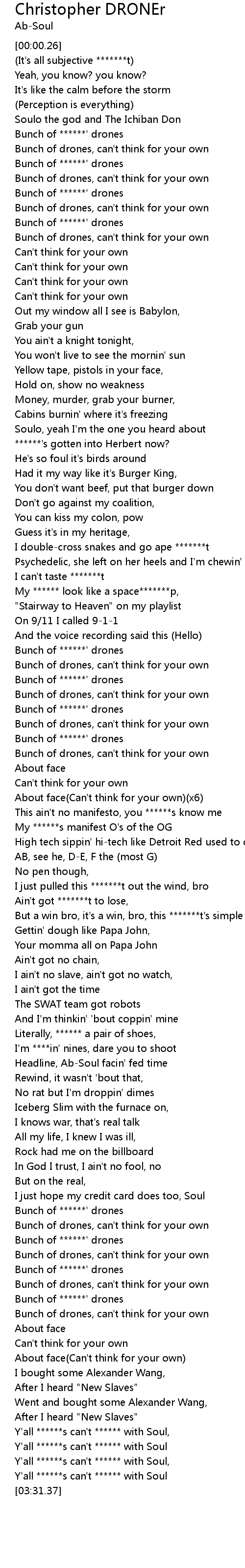 Christopher DRONEr Lyrics