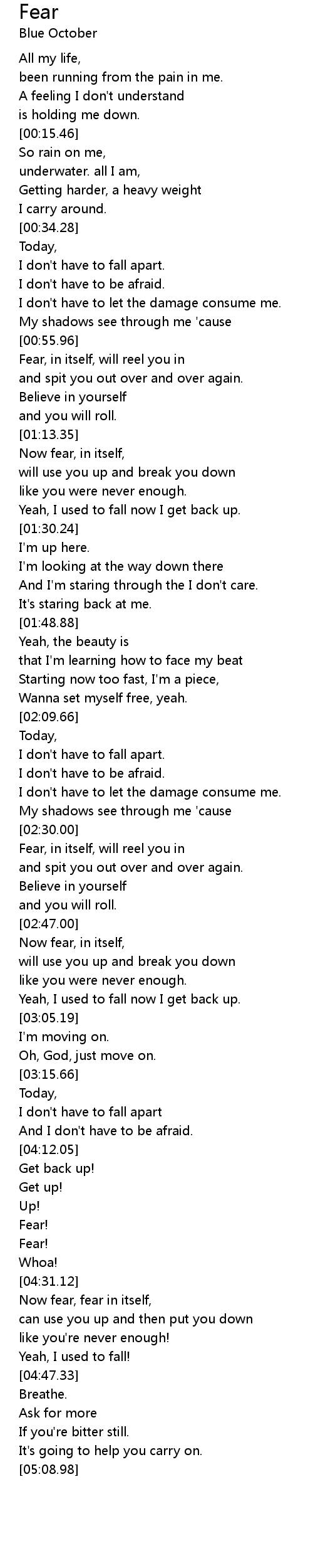 And I don't have to be afraid. |