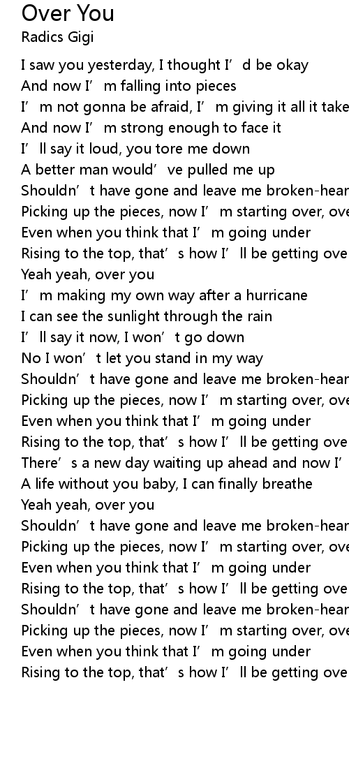 | [00:51.150] | Picking up the pieces, now I' m starting over, over |