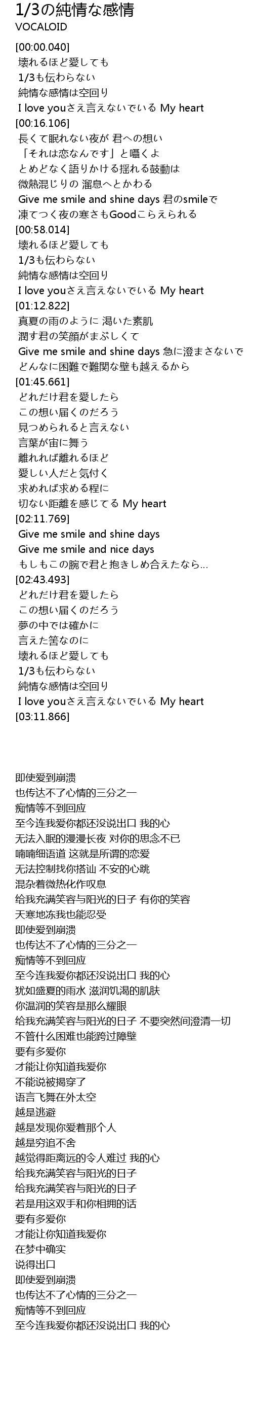 | [00:10.137] | I love youさえ言えないでいる My heart |