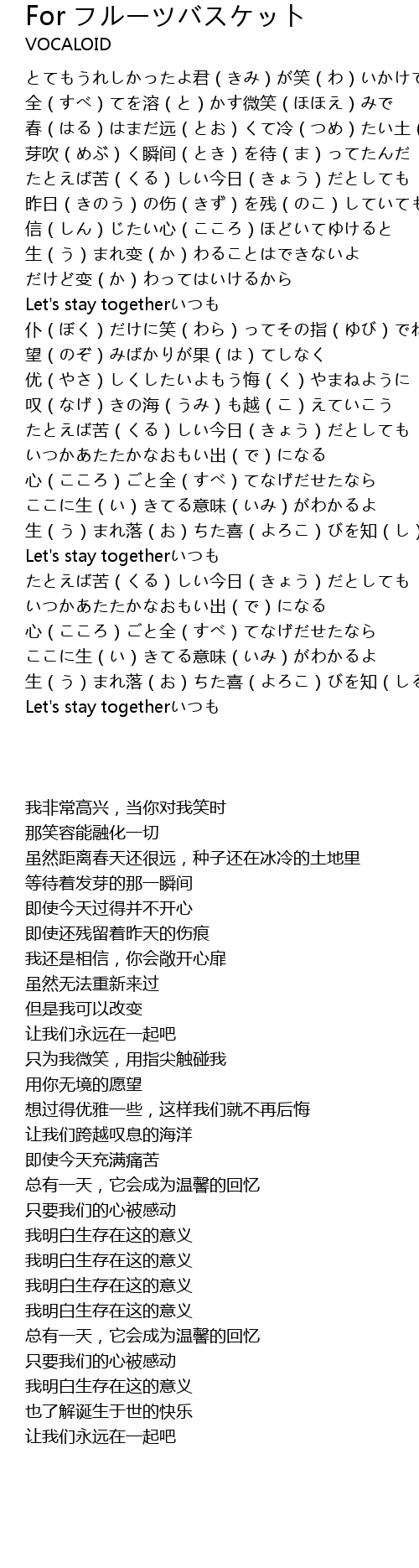| Song | For フルーツバスケット |