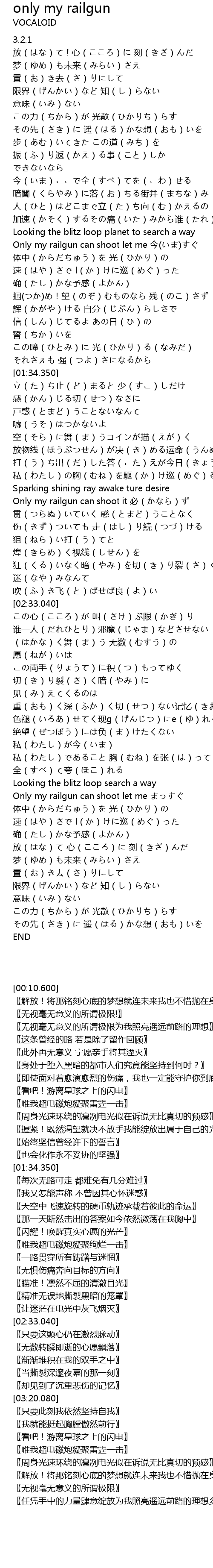 | [03:38.100] | Only my railgun can shoot let me まっすぐ |