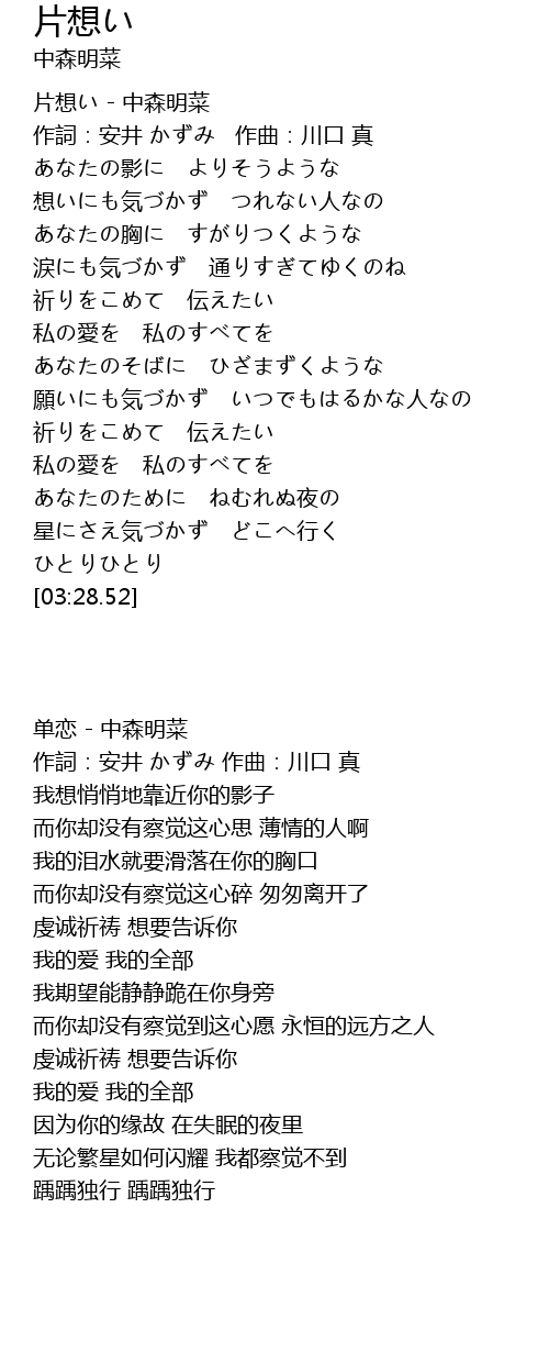 | [01:47.81] | 願いにも気づかず いつでもはるかな人なの |