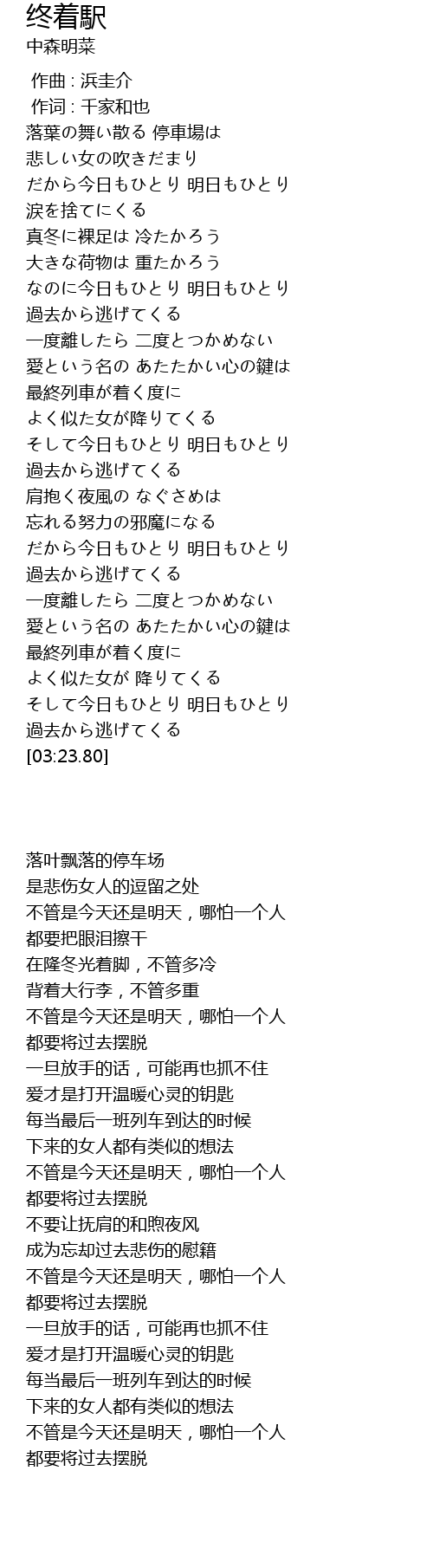| [00:23.95] | 落葉の舞い散る 停車場は |
