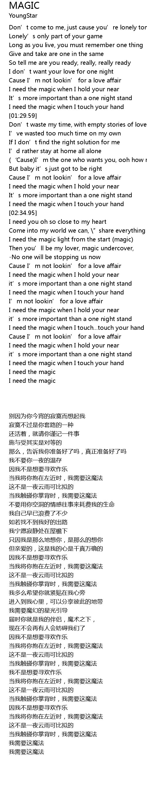 | [02:26.22] | I need the magic when I touch your hand |
