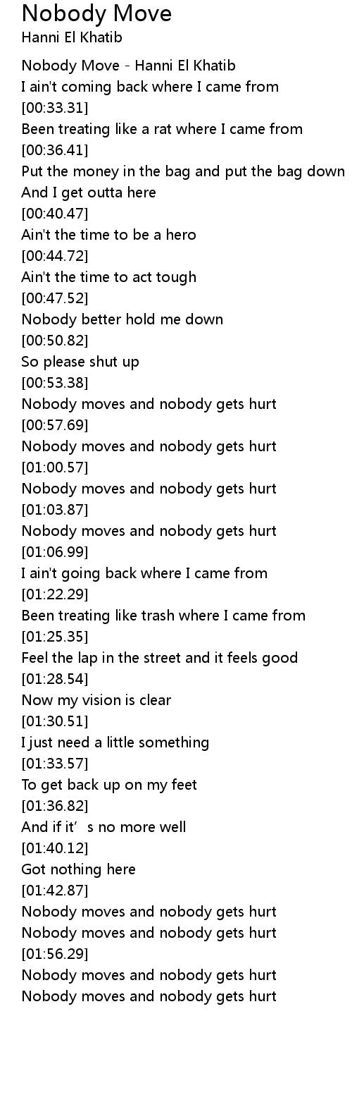| [00:00.85] | Nobody Move Hanni El Khatib |
