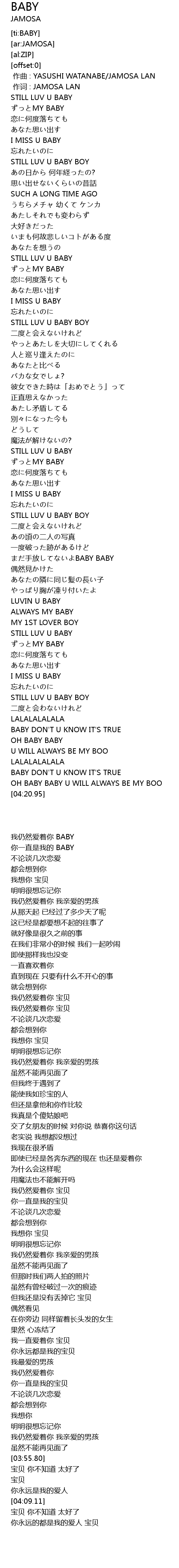 | [00:20.44] | STILL LUV U BABY BOY |