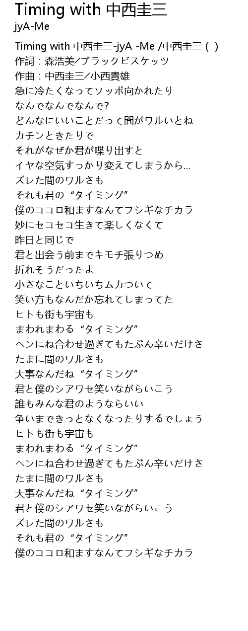| [00:00.00] | Timing with 中西圭三-jyA -Me /中西圭三() |