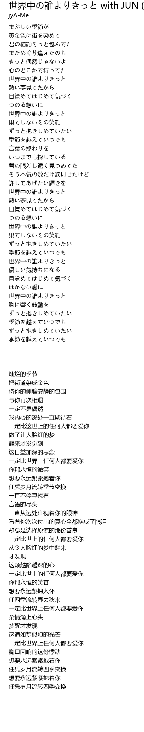 | Song | 世界中の誰よりきっと with JUN (CLIFF EDGE) |