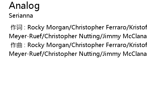 | [00:00.000] | 作曲 : Rocky Morgan/Christopher Ferraro/Kristofer Meyer-Ruef/Christopher Nutting/Jimmy McClanahan |