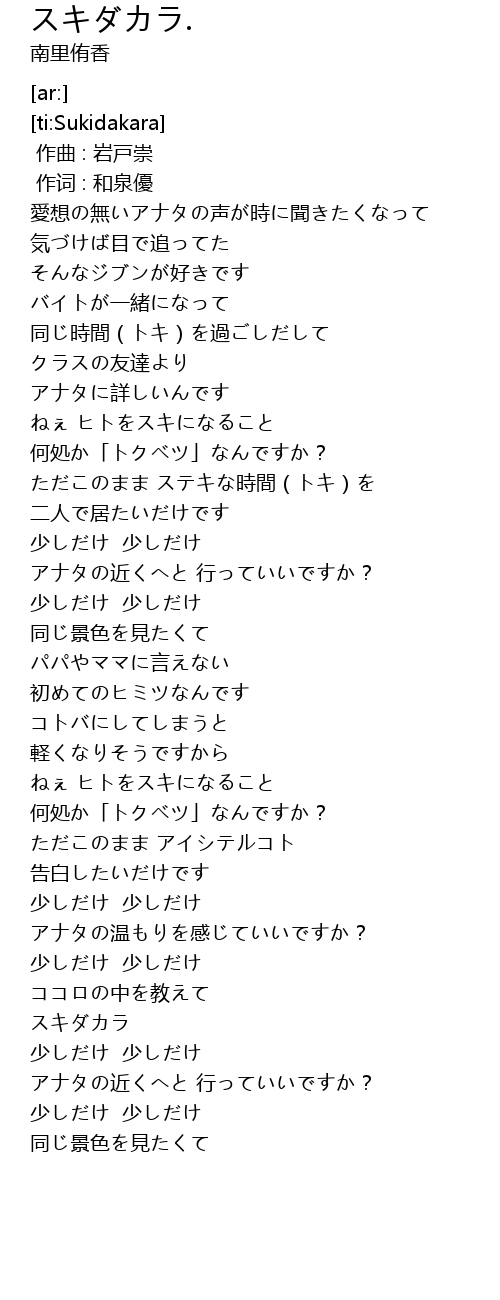 | [01:04.65] | ねぇ ヒトをスキになること |