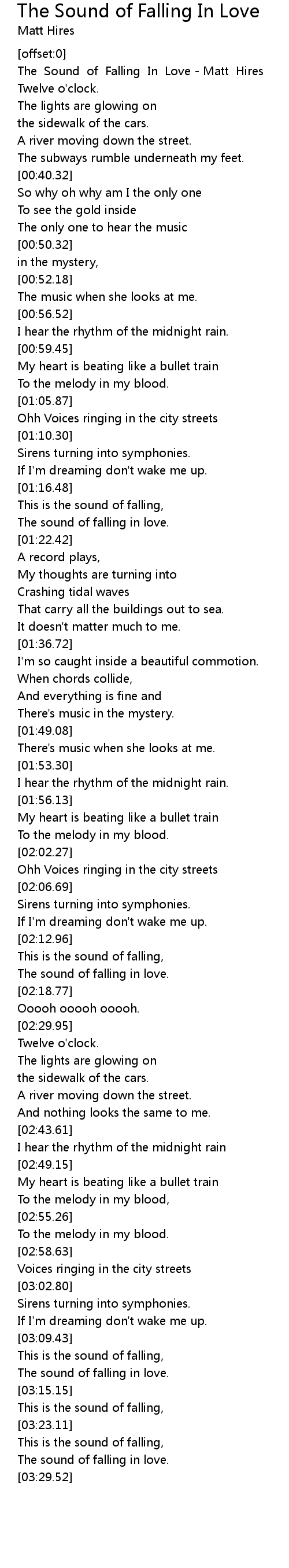 [00:01.19] The Sound of Falling In Love - Matt Hires