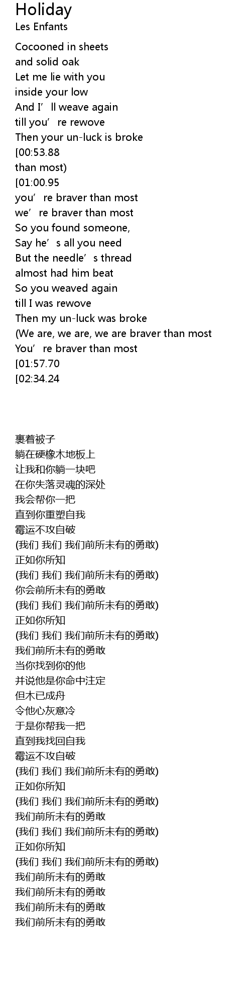 | [01:52.41][01:57.70] | We are, we are, we are braver than most |
