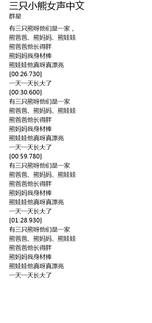 | [01:39.670] | 熊爸爸、熊妈妈、熊娃娃 |
