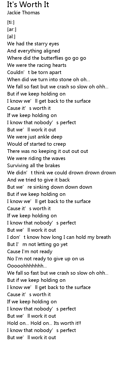 | [00:46.94] | Cause it' s worth it |