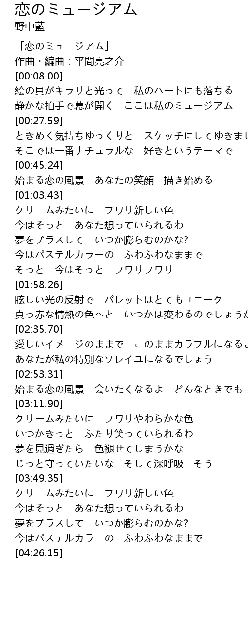 | [04:15.67] | 今はパステルカラーの ふわふわなままで |