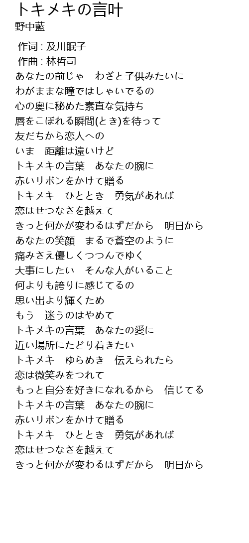 | [03:28.862] | トキメキの言葉 あなたの腕に |