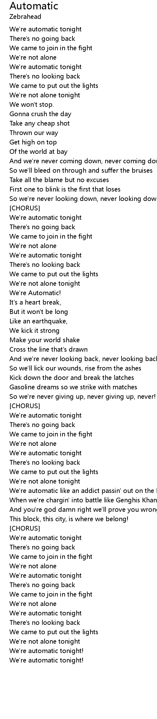 We're automatic tonight |