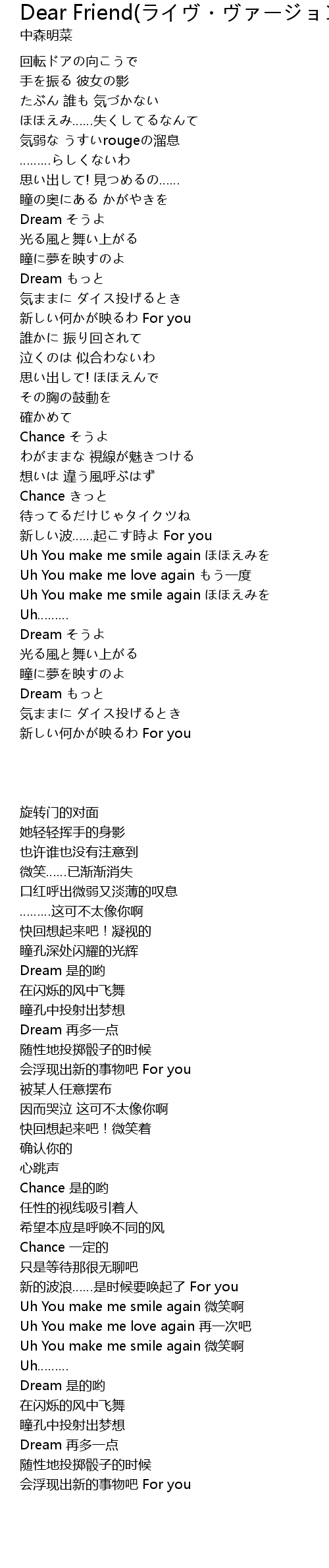 | [05:57.420] | Uh You make me smile again ほほえみを |