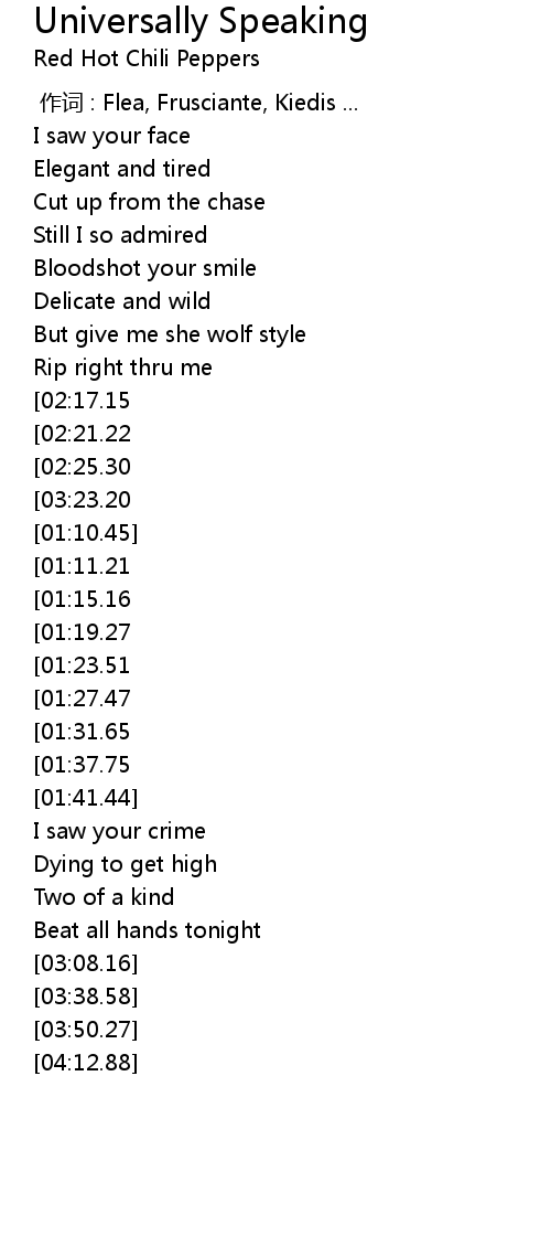 | [00:00.00] | 作词 : Flea, Frusciante, Kiedis ... |