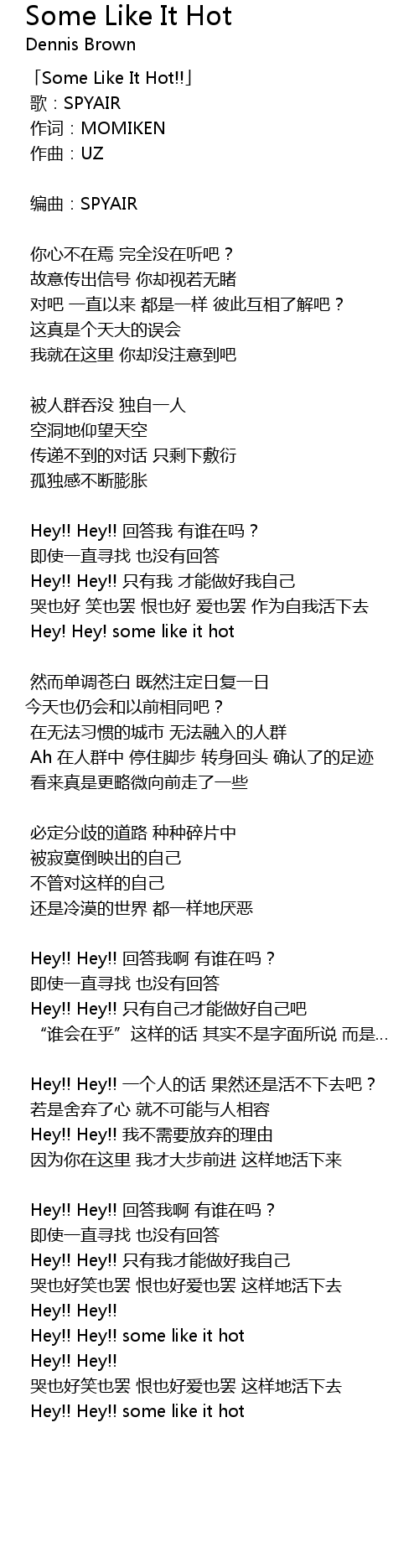 | Hey!! Hey!! huí dá wǒ yǒu shuí zài ma? | |