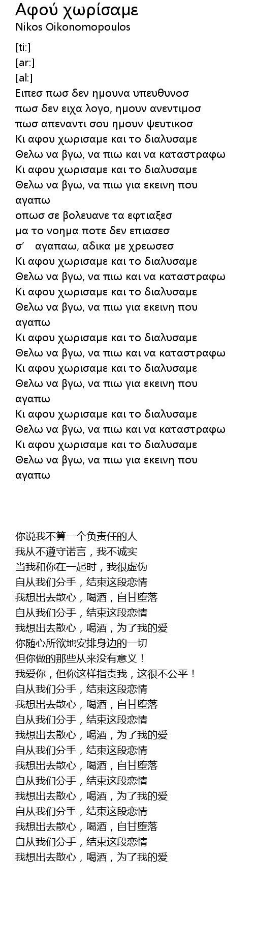 Κι αφου χωρισαμε και το διαλυσαμε |