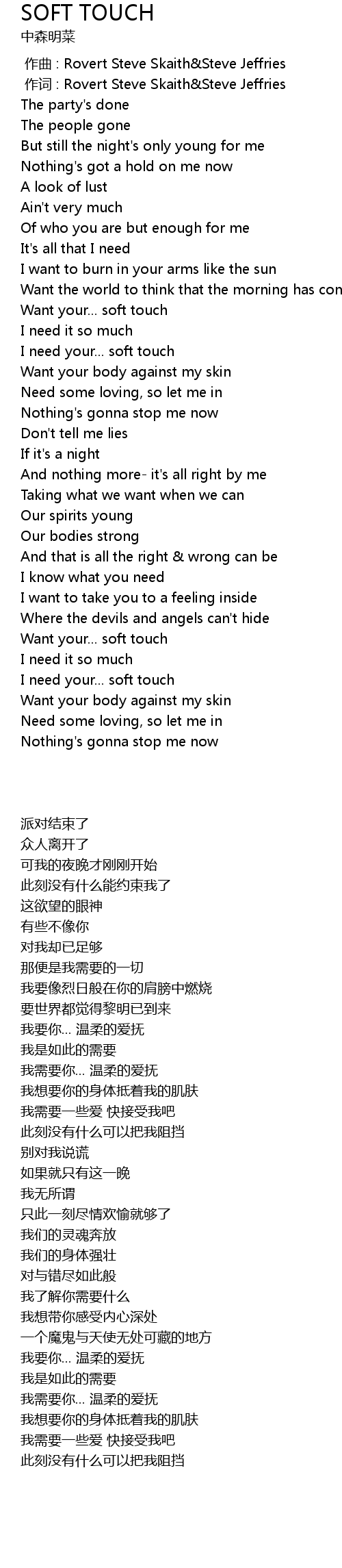 | [00:01.00] | 作词 : Rovert Steve Skaith&Steve Jeffries |