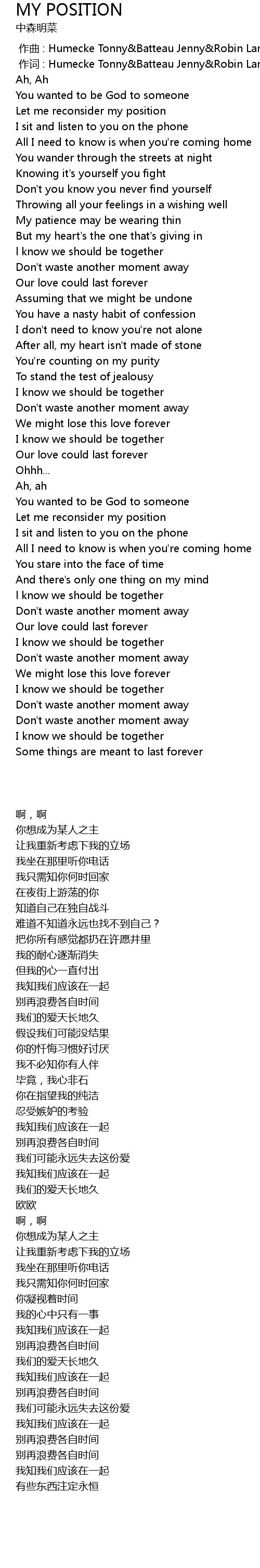 | Song | MY POSITION |