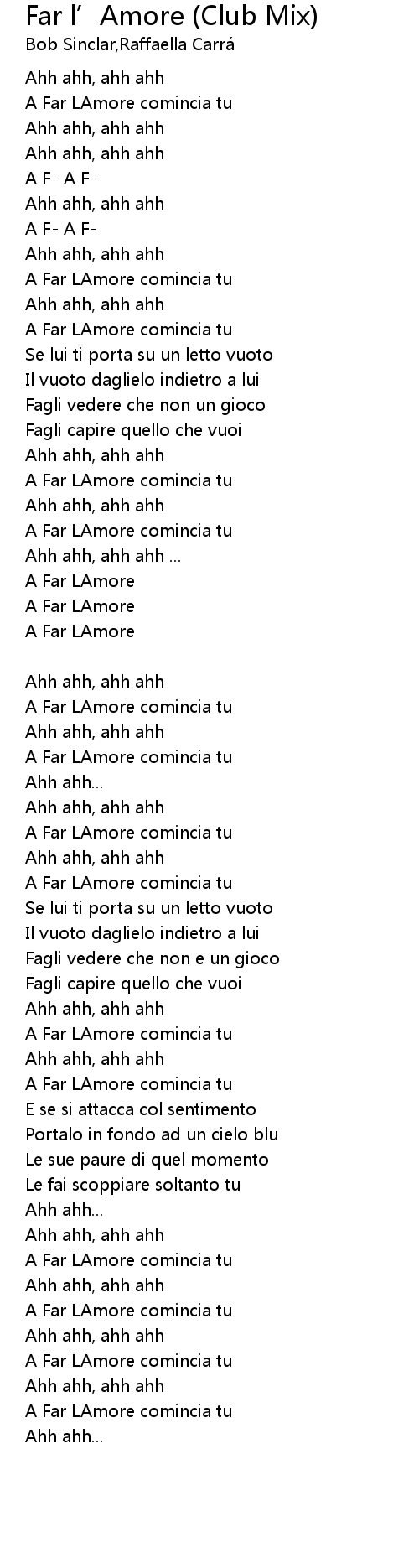 Far l’Amore (Club Mix) Far l' Amore Club Mix Lyrics