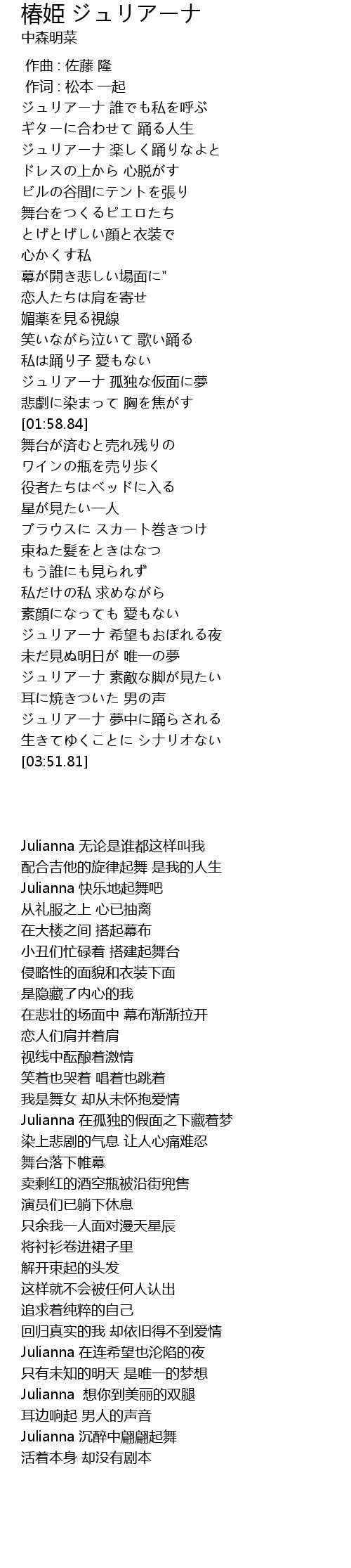 | [01:44.71] | ジュリアーナ 孤独な仮面に夢 |