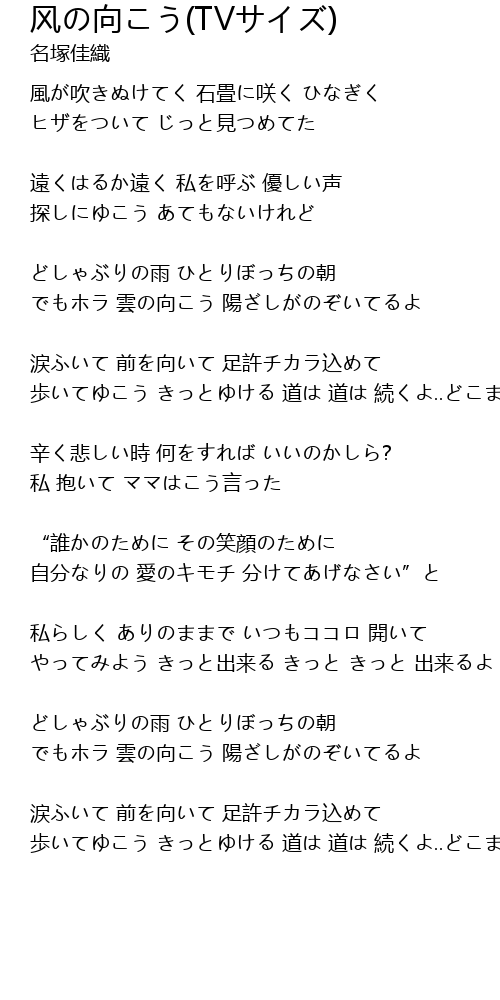 | Song | 风の向こう(TVサイズ) |