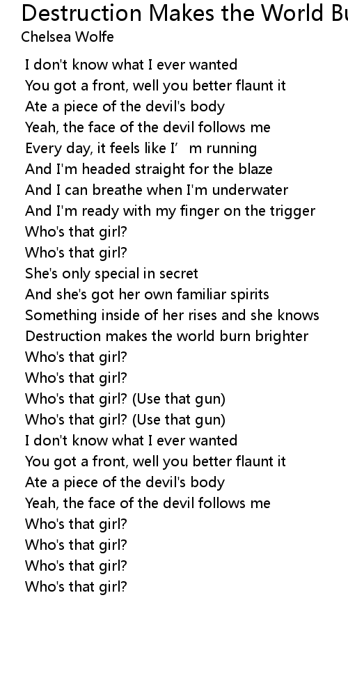 | Song | Destruction Makes the World Burn Brighter |