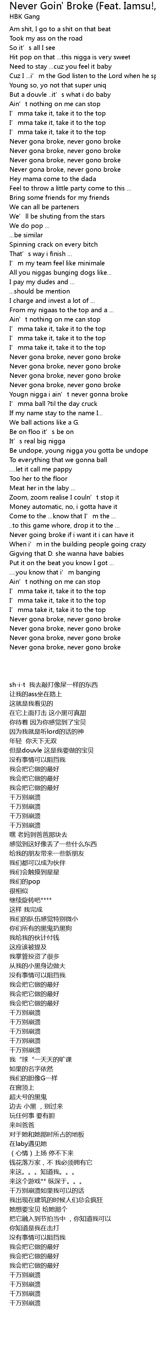 | [01:50.25] | Yougn nigga i ain’t never gonna broke |