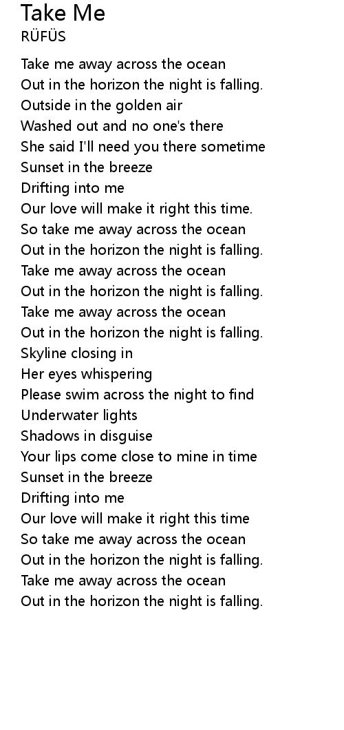 | So take me away across the ocean | |