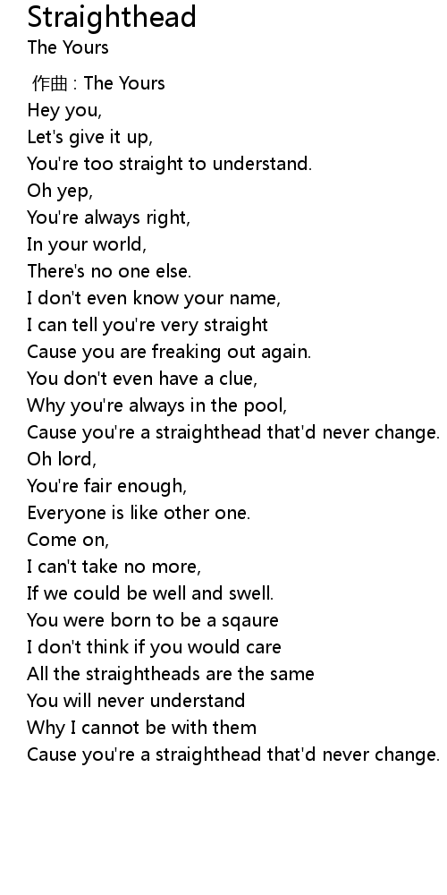 | [00:55.93] | Cause you' re a straighthead that' d never change. |