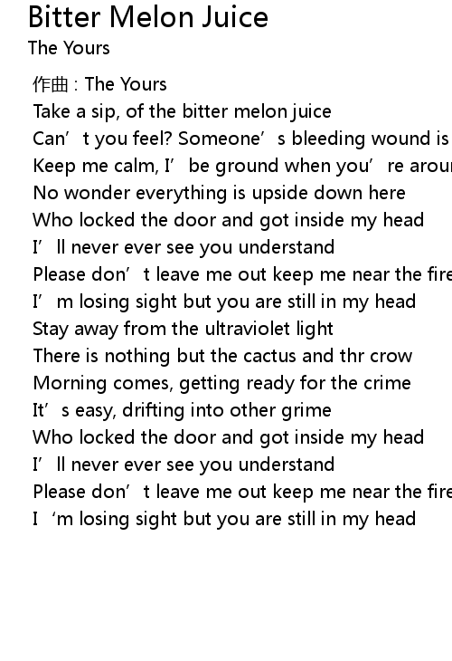 | [00:26.559] | Take a sip, of the bitter melon juice |