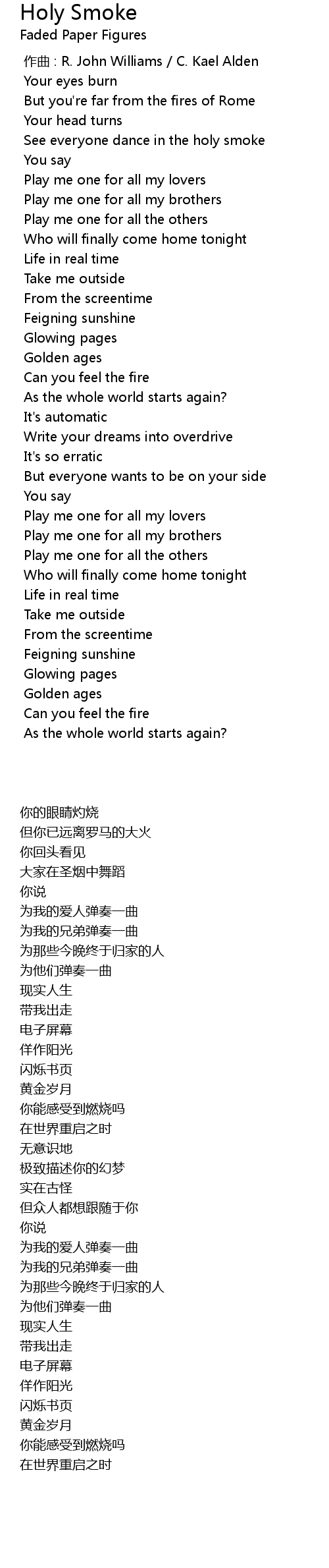 | [00:40.717] | See everyone dance in the holy smoke |