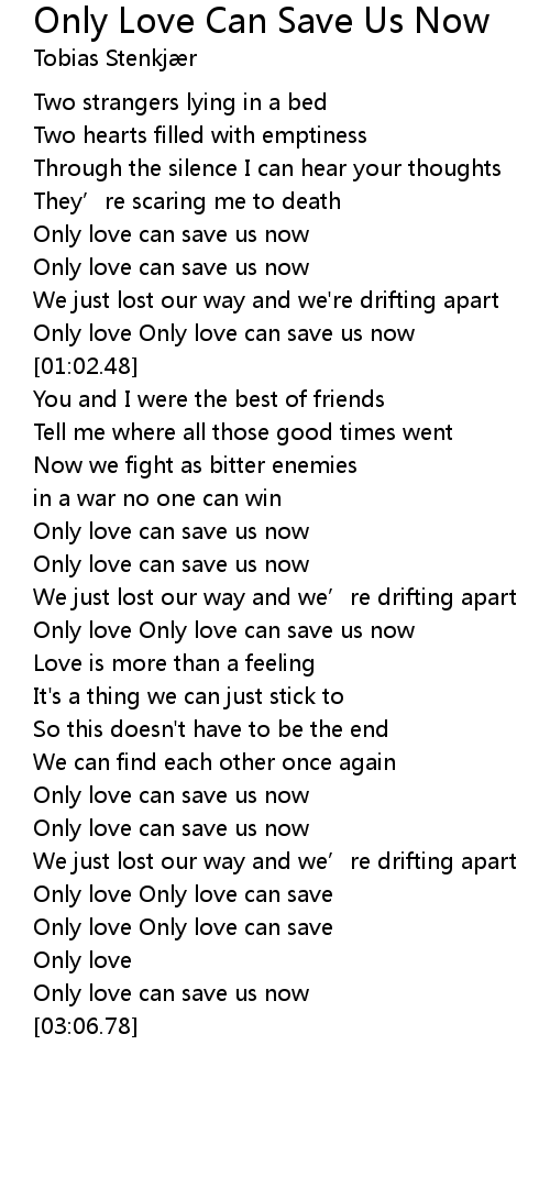 | [00:34.93] | Only love can save us now |